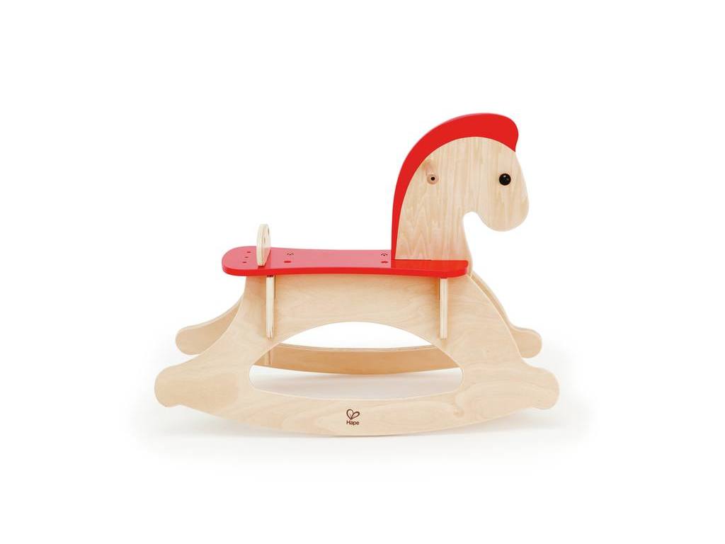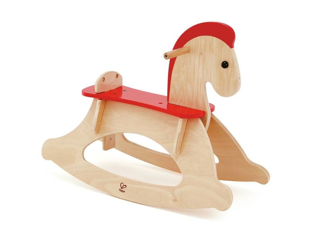 Verstellbares Schaukelpferd aus Holz mit drei Sicherheitseinstellungen